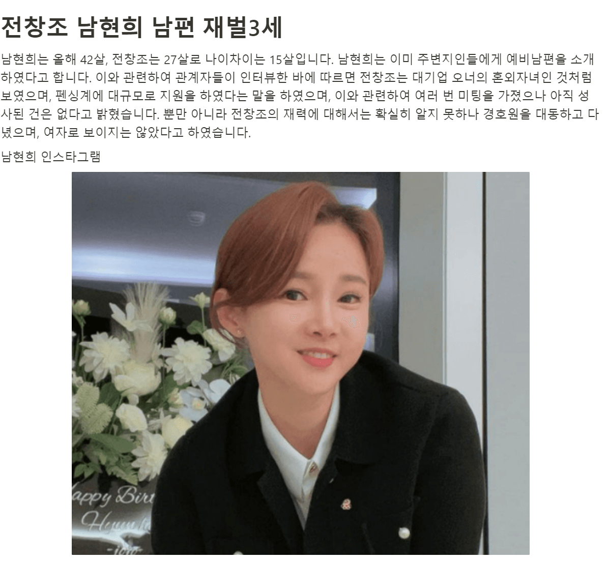 현재 밝혀진 바로는 그녀는 2년 3개월의 징역형을 받았으며, 사기행각은 2018년 4월부터 2020년 1월까지 총 2억 9000만 원을 가로챘습니다. 남현희와의 결혼이 알려지고 예비남편으로 알려진 전창조의 진짜 정체에 대하여 사람들이 의혹을 가지고 논란이 불거졌습니다. 이에 전창조는 자신의 정체에 대해 완강히 부인하였으나, 결국 남 씨는 전 씨에게 이별을 통보하게 됩니다. 이를 수긍하지 못한 전창조는 남현희 부모님의 집을 찾아가 여러 번 문을 두드리고 초인종을 누를 다가 스토킹처벌법 위반과 주거침입혐의로 경찰에 신고당해 본인의 정체에 대해 밝혀지게 되었습니다. 경찰조사 과정에서 신원조회를 통해 전창조가 아니라 전청조인 것이 확실하게 밝혀인 것입니다. 이에 대하여 남현희는 그의 정체에 대해 완전히 속았다고 밝혔습니다. 그녀뿐만 아니라 친인척들까지 전창조에게 사기를 당했다고 하나둘씩 밝혀지고 있습니다.